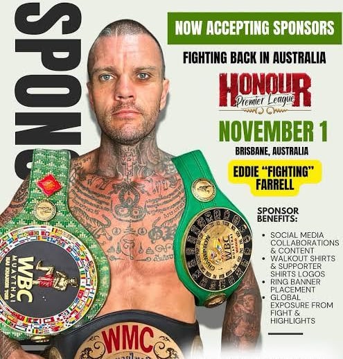 Eddie Farrell is known for his relentless fighting style, world-level experience, and commitment to authentic Muay Thai. As a multiple-time Muay Thai World Champion with fights across Thailand, Australia, China, and Europe, Eddie represents the grit and heart that WarriorWear was built on.
