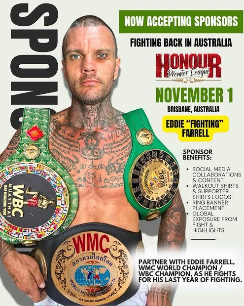Eddie Farrell is known for his relentless fighting style, world-level experience, and commitment to authentic Muay Thai. As a multiple-time Muay Thai World Champion with fights across Thailand, Australia, China, and Europe, Eddie represents the grit and heart that WarriorWear was built on.